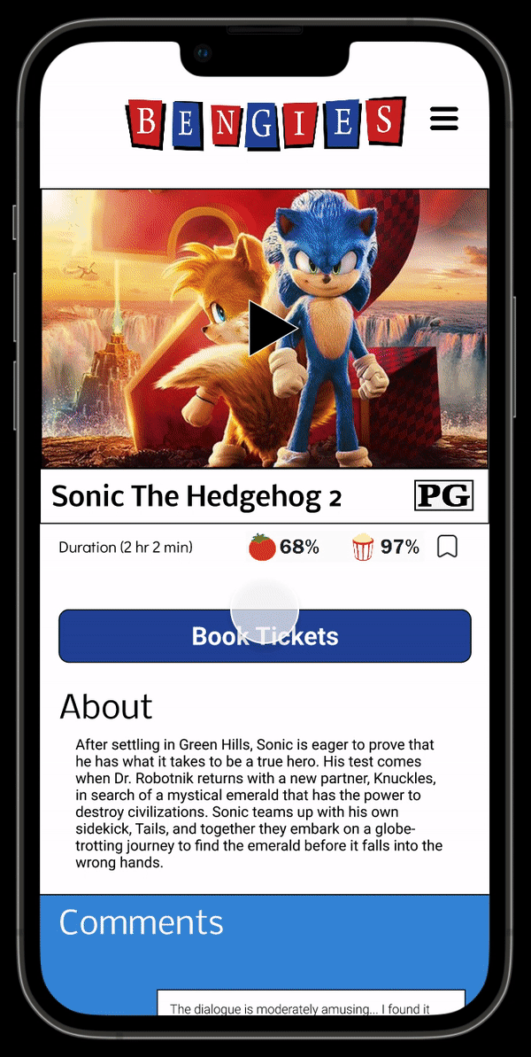 In-House Movie Previews: Users will have the option to view the movies trailer before purchasing a ticket.